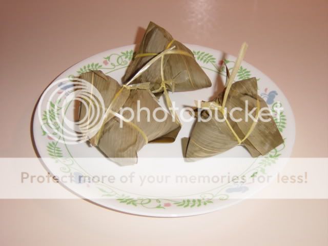 The below picture shows the dumplings wrapped in bamboo leaves.